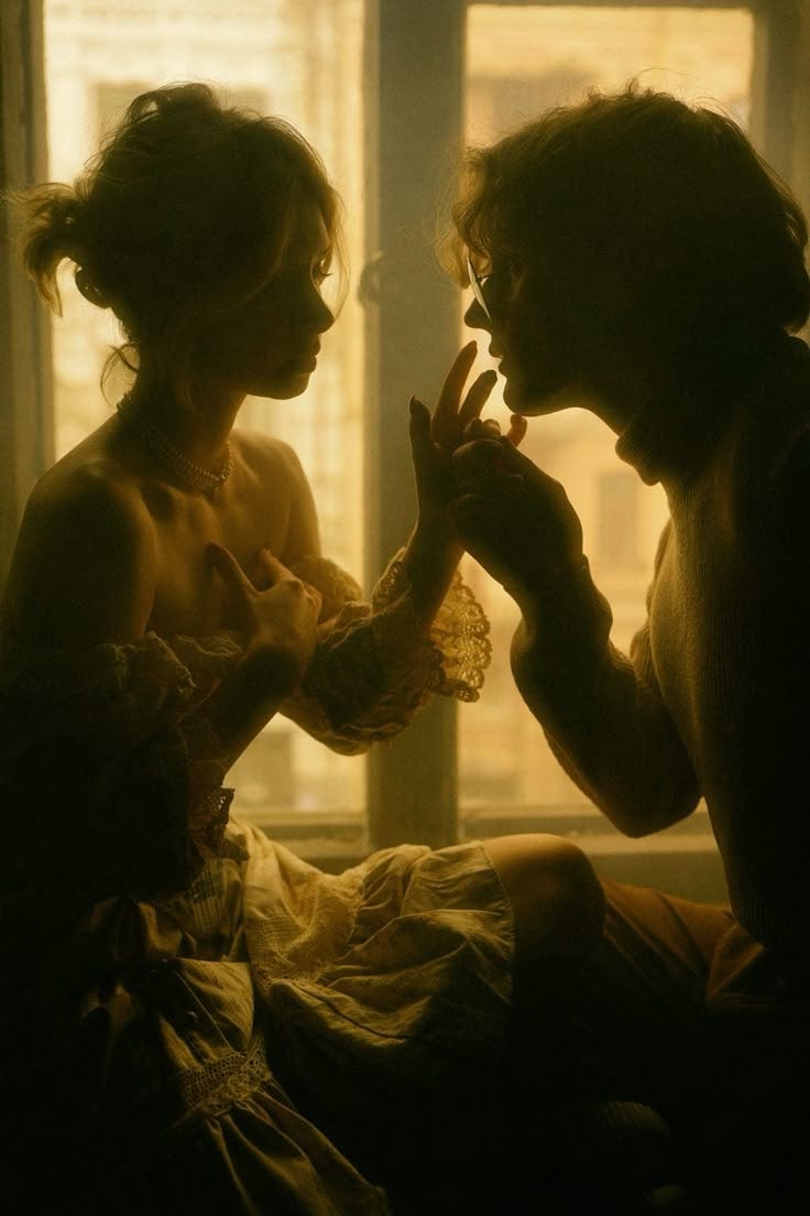 Gently, ever so slowly, so close that all her eyes ever reverted back to were the lips that spoke, he blew away the wisps of hair falling on her face, and her with her heart beating against its cages, she closed her eyes and let the slow rumble, the drawl, wash over her.